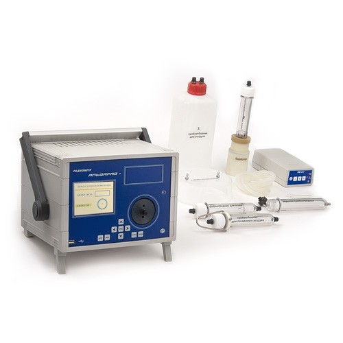 - В данную модификацию входят также автономная воздуходувка с пробоотборными устройствами для отбора проб при измерениях содержания радона в пробах воды, почвенного воздуха и измерения плотности потока радона (ППР) с поверхности грунта.