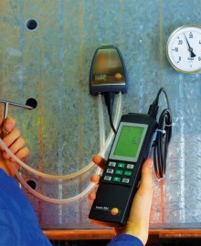Прецизионный манометр Testo 521-2 со встроенным сенсором давления, диапазон измерений 0…100 гПа, класс точности 0,1% от предельного значения. В комплекте с трубкой Пито используется для измерений скорости потока в диапазоне от 5…100 м/с. Для значений в диапазоне 1…12 м/с используется зонд давления, 100 гПа. Доступно сохранение данных по местам замера и анализ на ПК, а также документирование результатов, благодаря возможности распечатки протокола измерений с помощью быстродействующего принтера Testo.