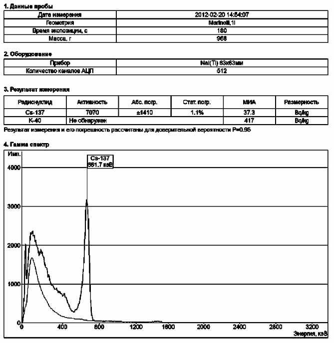 Диапазон измерения объемной (удельной) активности 137Cs 3,7 – 1∙106 Бк/л (Бк/кг) 131I 3 – 4·105 Бк/л (Бк/кг)