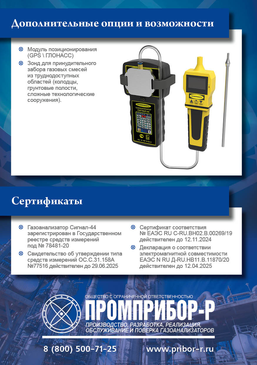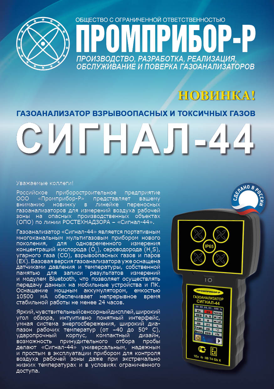 Газоанализатор взрывоопасных и токсичных газов Сигнал-44 (H2S/CH4)