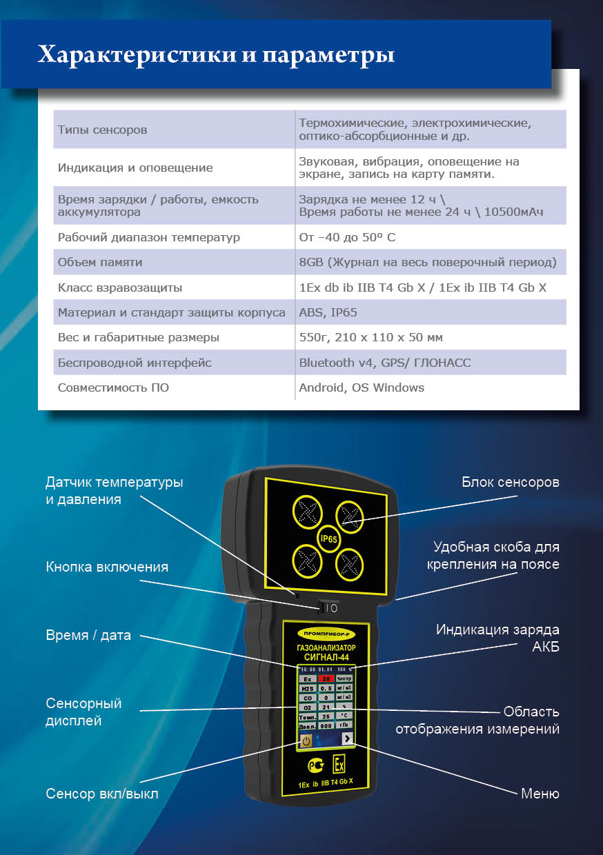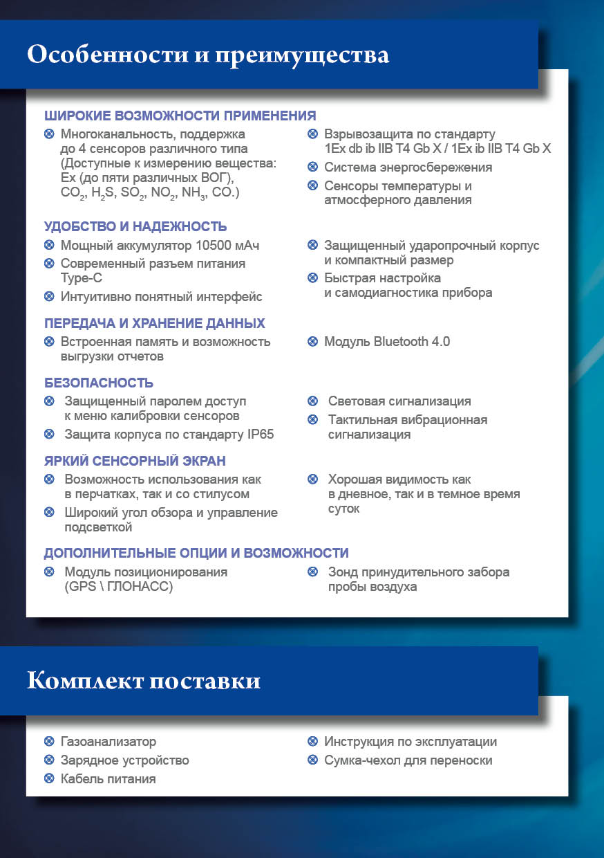 Измерение до 4 газов. Контроль давления,температуры, модуль GPS. Принудительный пробоотбор, передача данных на ПЭВМ.