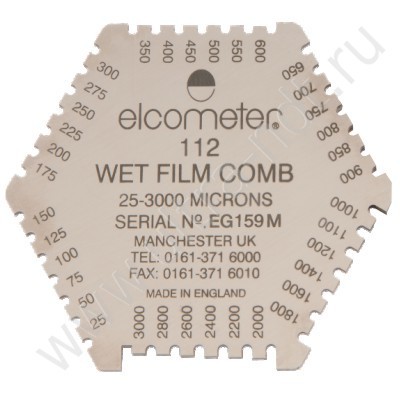 Диапазон измерения гребенки Elcometer 112AL находится в пределах от 25 до 3000 мкм. На одной стороне гребенки нанесены метрические единицы (мкм). на другой стороне британские единицы милс.