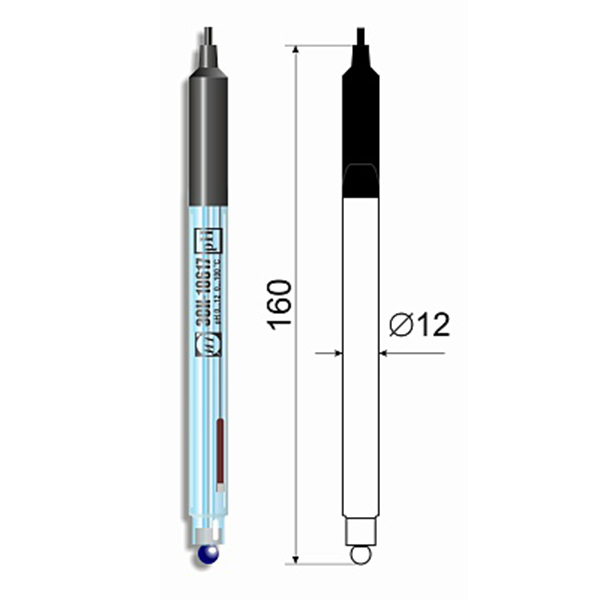 Электрод стеклянный комбинированный ЭСК-10617 (промышленный) со встроенным одно-ключевым неперезаправляемым электродом сравнения предназначен совместно с электронным преобразователем для измерения активности ионов водорода (рН) в водных рас-творах и взвесях при контроле технологических процессов в составе погружных и магистральных датчиков.