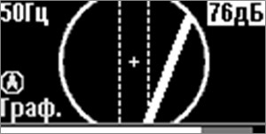 На индикаторе дополнительно с положением трассы отображается график изменения уровня сигнала на рабочей частоте. Режим «График» удобен при слабом уровне сигнала или в случае, когда электромагнитное поле искажено.