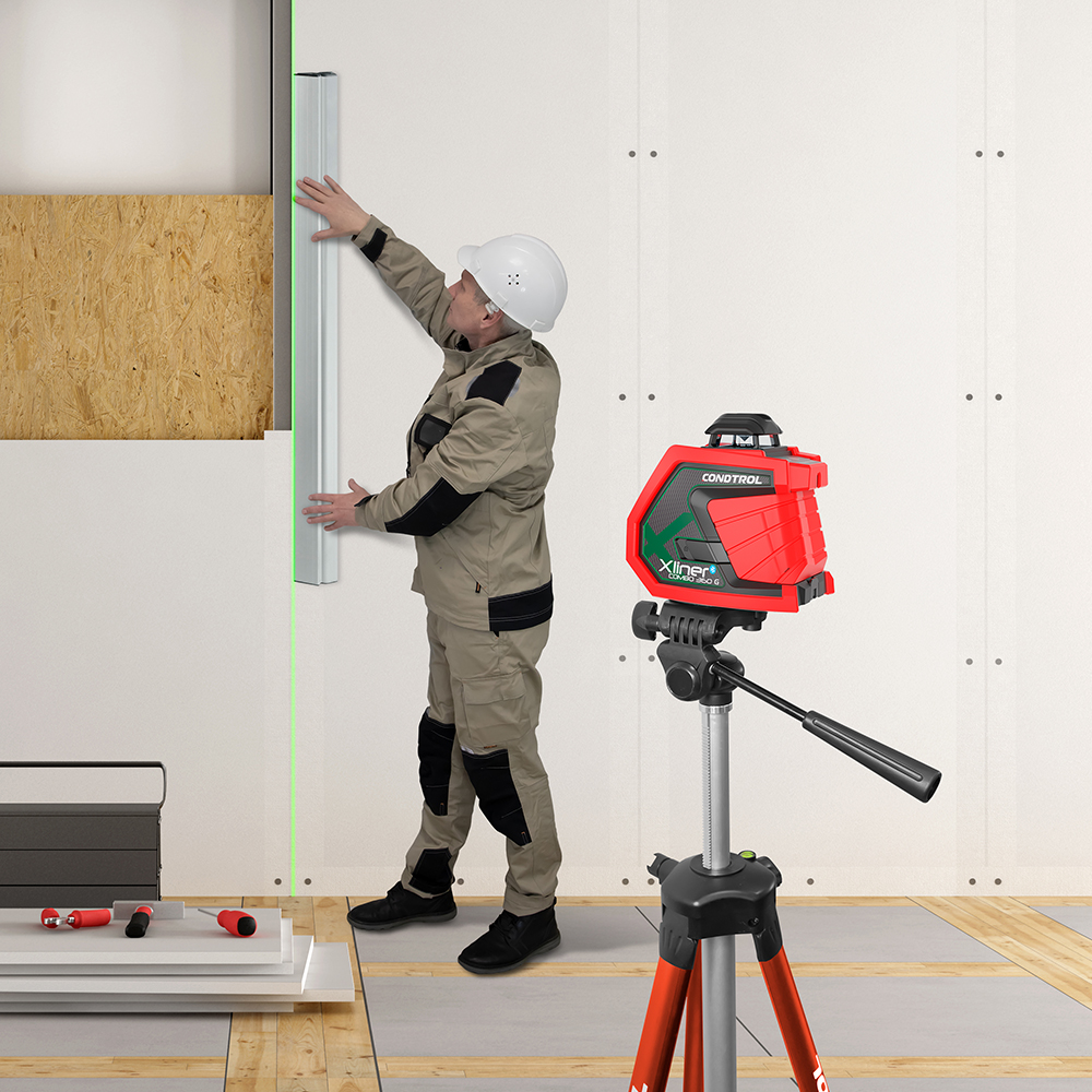 CONDTROL XLiner 360G пригодится для проведения строительных и ремонтных работ: укладка плитки, монтаж навесных потолков, бордюров, поклейки обоев, прокладка коммуникаций и так далее. Прибор удобно использовать на открытом пространстве за счет зелёного лазерного излучателя и высокой степени пылевлагозащиты.