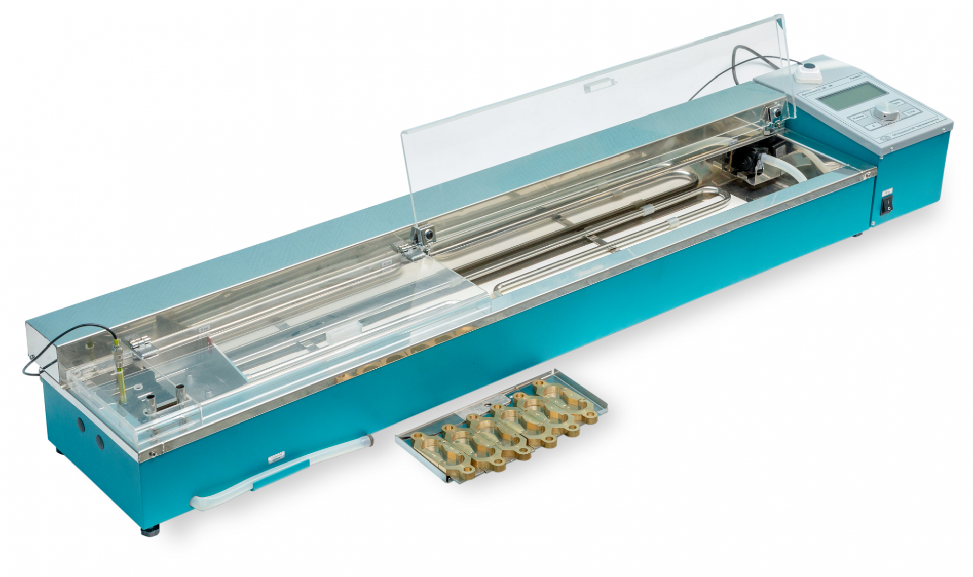• Встроенный насос для перемешивания теплоносителя бани совместно с теплообменными трубками обеспечивает минимальный градиент температуры в разных частях бани