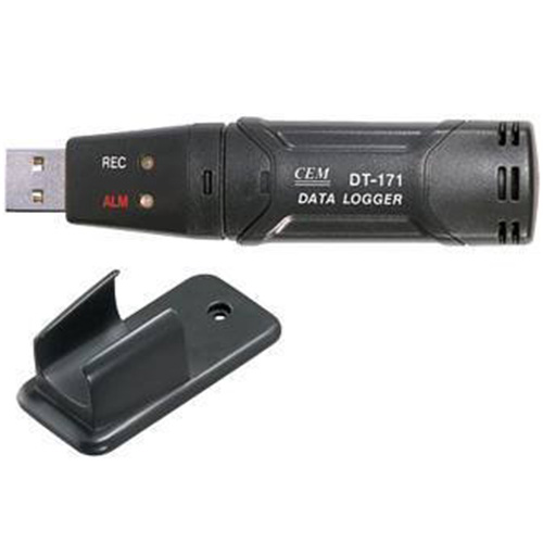 Логгер CEM DT-171 — цифровой регистратор температуры и влажности с высокой точностью измерений: погрешность при снятии замеров температуры не превышает ­1°С, влажности — 3%Rh. Главное отличие данного прибора от других устройств этого класса — сверхмалые размеры: внешне логгер напоминает портативный USB-модем.