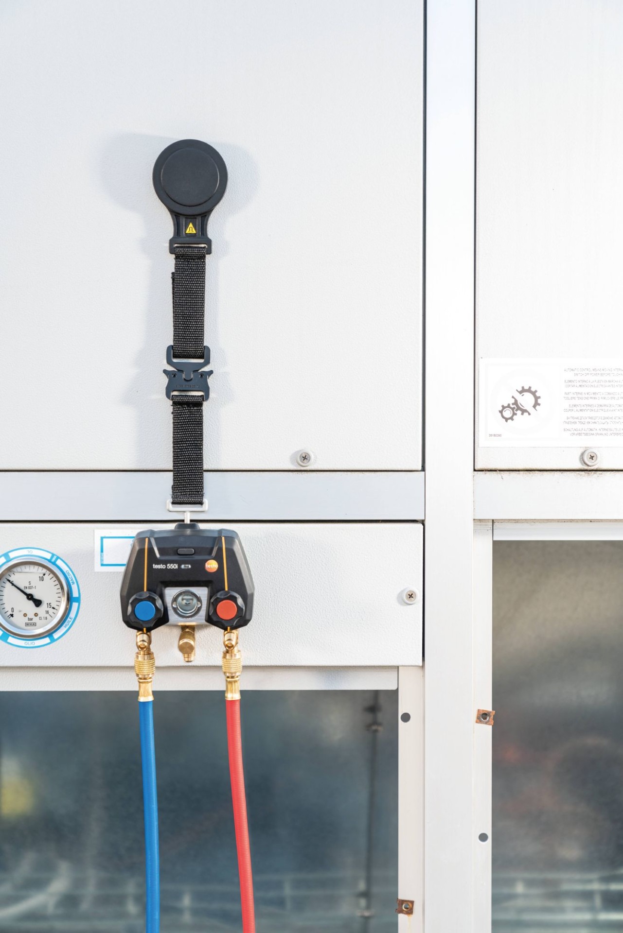 Используйте магнитный ремень, чтобы быстро и надёжно закрепить ваш манометрический коллектор на металлических поверхностях холодильных систем, систем кондиционирования и тепловых насосов. Благодаря простой системе защёлкивания вы можете либо подвешивать прибор на крюк, либо закреплять его с помощью магнита – и ваши руки будут свободны для измерений.