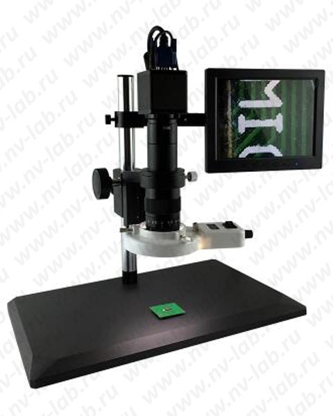 Микроскоп цифровой Биолаб ВМ-3 В настоящее время при выборе микроскопов все чаще можно встретить такое требование, как возможность отображать изображение на монитор. Такой выбор обусловлен тем, что работа с монитором упрощает работу оператора и делает ее более комфортной, при этом повышается качество и производительность работы. В первую очередь микроскоп Биолаб цифровой ВМ-3 будет интересен специалистам, которые занимаются разработкой и ремонтом радиоэлектроники. По своим характеристикам видеомикроскоп напоминает стереоскопические микроскопы с плавно изменяемым увеличением, но при этом изображение выводится только на базовый экран. Отличительными особенностями таких микроскопов является большой рабочей отрезок (расстояние от объекта до фронтальной линзы) и большое поле зрения. Такое сочетание позволит одновременно наблюдать большую рабочую площадь и использовать в работе дополнительные инструменты. Микроскоп цифровой Биолаб ВМ-3 представляет из себя объектив с переменным увеличением в диапазоне от 0,7 до 4,5х. Увеличение изменяется плавно. К объективу крепиться цифровая видеокамера разрешением 2Мп. Между объективом и камерой располагается оптический каплер, который имеет собственное дискретное увеличение (0,35х, 0,5х, 1х и 2х). Изменяя увеличение каплера можно добиться большего увеличения, но при этом будет уменьшаться поле зрения. К основному объективу крепиться объектив-насадка с дискретным увеличением (0,5х, 0,75х, 1х и 2х). Заказывая большее увеличение насадки, следует помнить, что уменьшается рабочий отрезок. В комплекте с микроскопом поставляется 10” LCD-монитор, который крепиться на штатив микроскопа. Подсветка осуществляется кольцевым бестеневым осветителем с регулировкой яркости. Комплектация базовой модели: 1. ZOOM-объектив: 0,7-4,5х2. Объектив насадка: 1х3. Оптический каплер: 0,5х4. Штатив5. Видеокамера 2Мп6. Бестеневой кольцевой осветитель (60 светодиодов);7. 10″ LCD монитор8. Комплект кабелей.