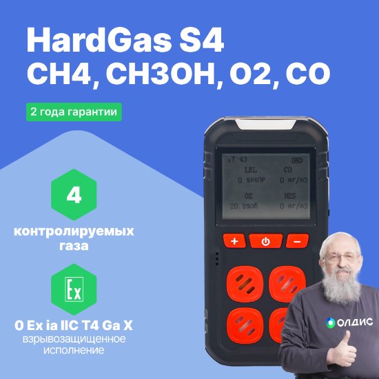 Портативный газоанализатор HardGas S4 (CH4, O2, CO, CH3OH)