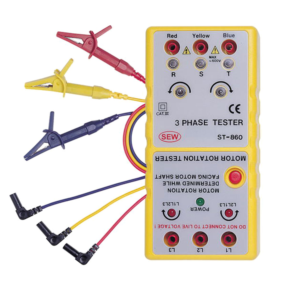 - Три функции в одном приборе («3 в 1»): определение наличия фазного напряжения и порядка чередования фаз, определение порядка подключения обмоток электродвигателя.