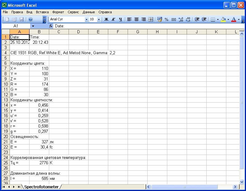 Программное обеспечение «Спектрофотометр»