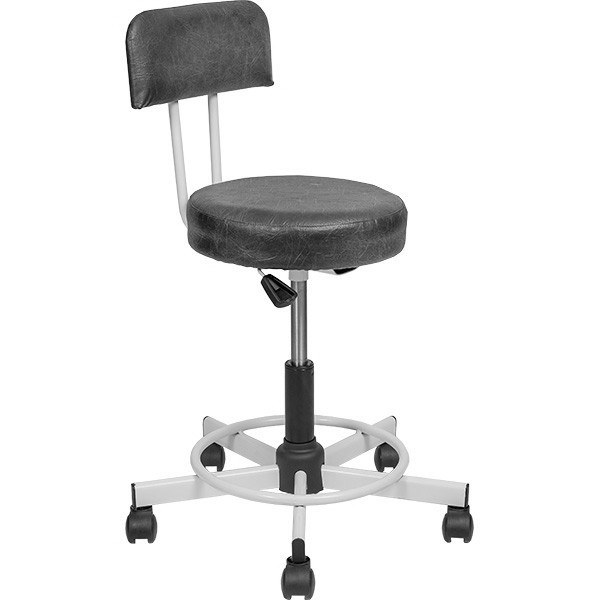 Стул лабораторный с кольцом-подставкой для ног. Обивка: искусственная кожа, цвет черный (по запросу возможна поставка стульев серого цвета).