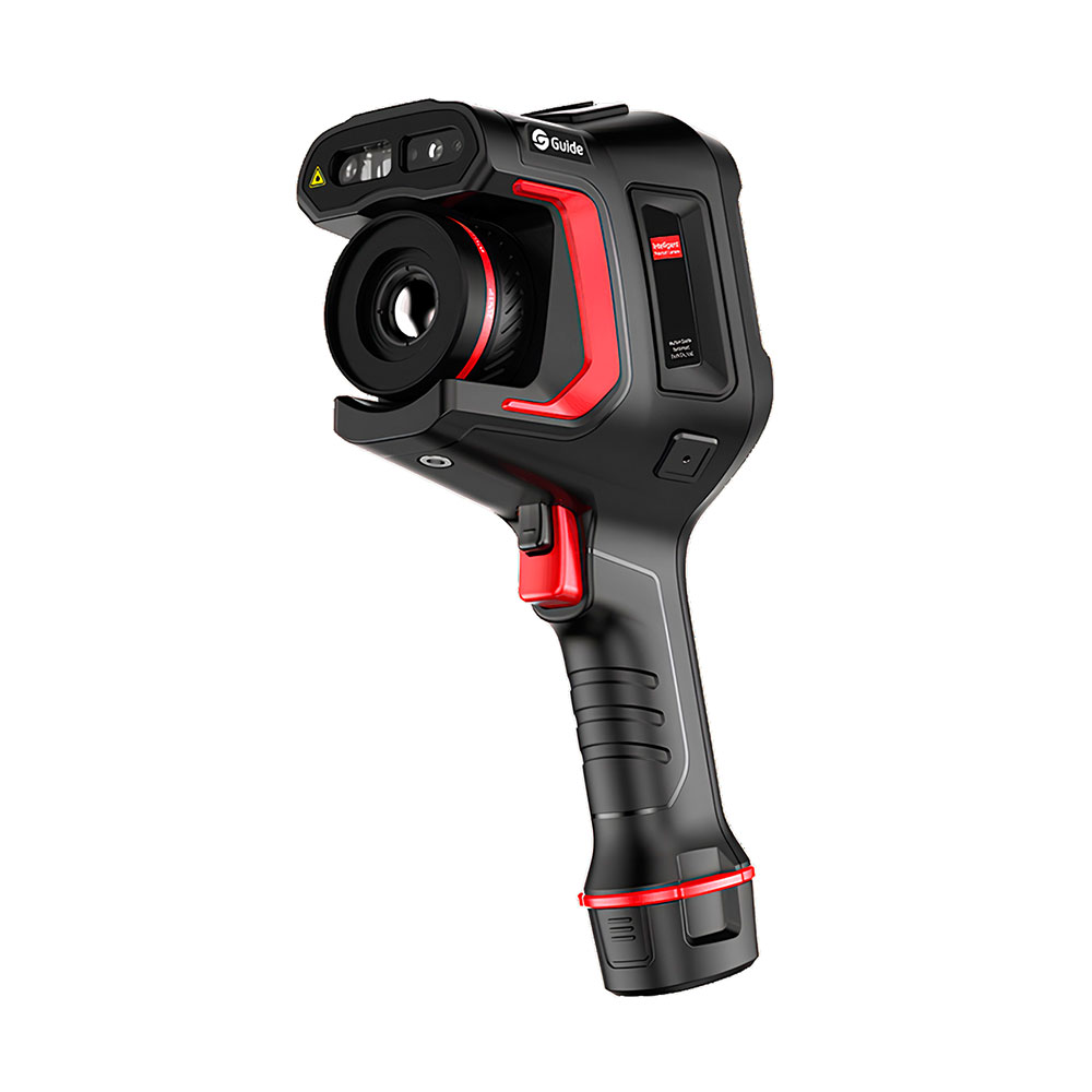 Измерительный тепловизор Guide H3 (Hammer Series) оснащён детектором с разрешением 320 x 240 пикселей и температурной чувствительностью 45 мК, частота кадров 30Гц. Диапазон измерения температуры -40°C +150°C, 0°C +650°C с автоматическим переключением режимов работы, 5 режимов фокусировки. Опционально от 500°C до 2000°C. Тепловизор оснащён 5 мегапиксельной камерой, есть функция наложения изображений, фото с камеры видимого спектра на термограмму, в результате получается более чёткое ик-изображение за счёт прорисовки краёв объектов. В комплекте с камерой два аккумулятора, зарядки хватает на 5 часов работы.