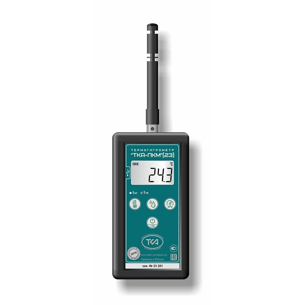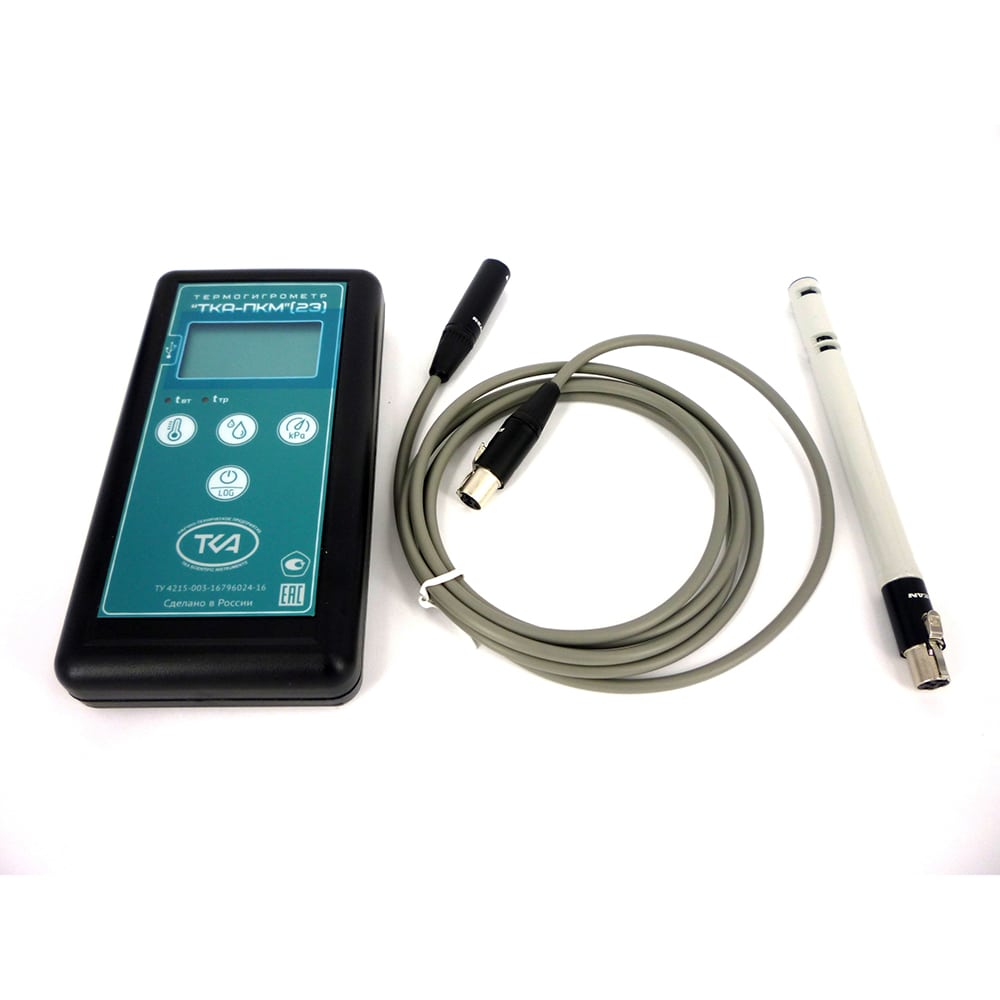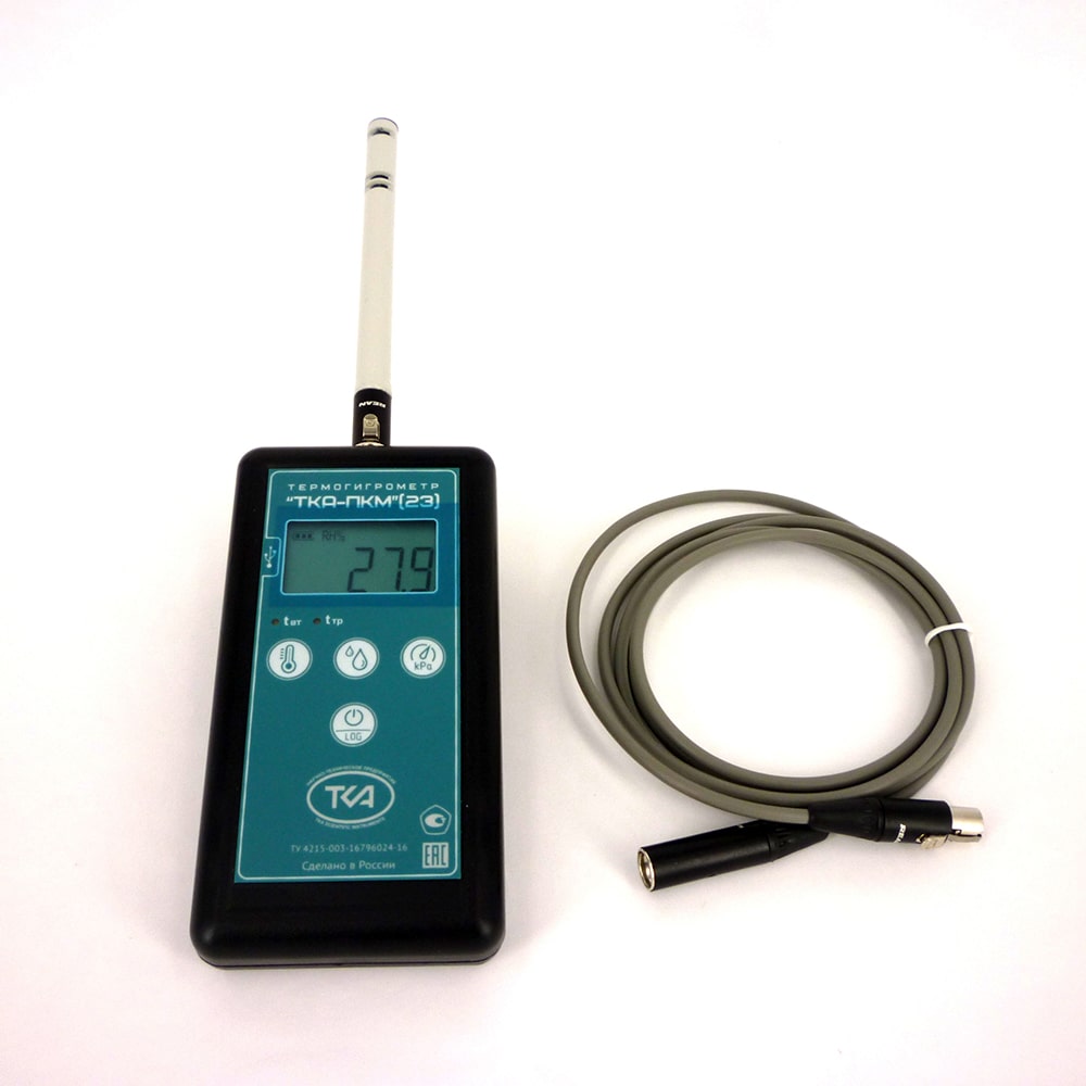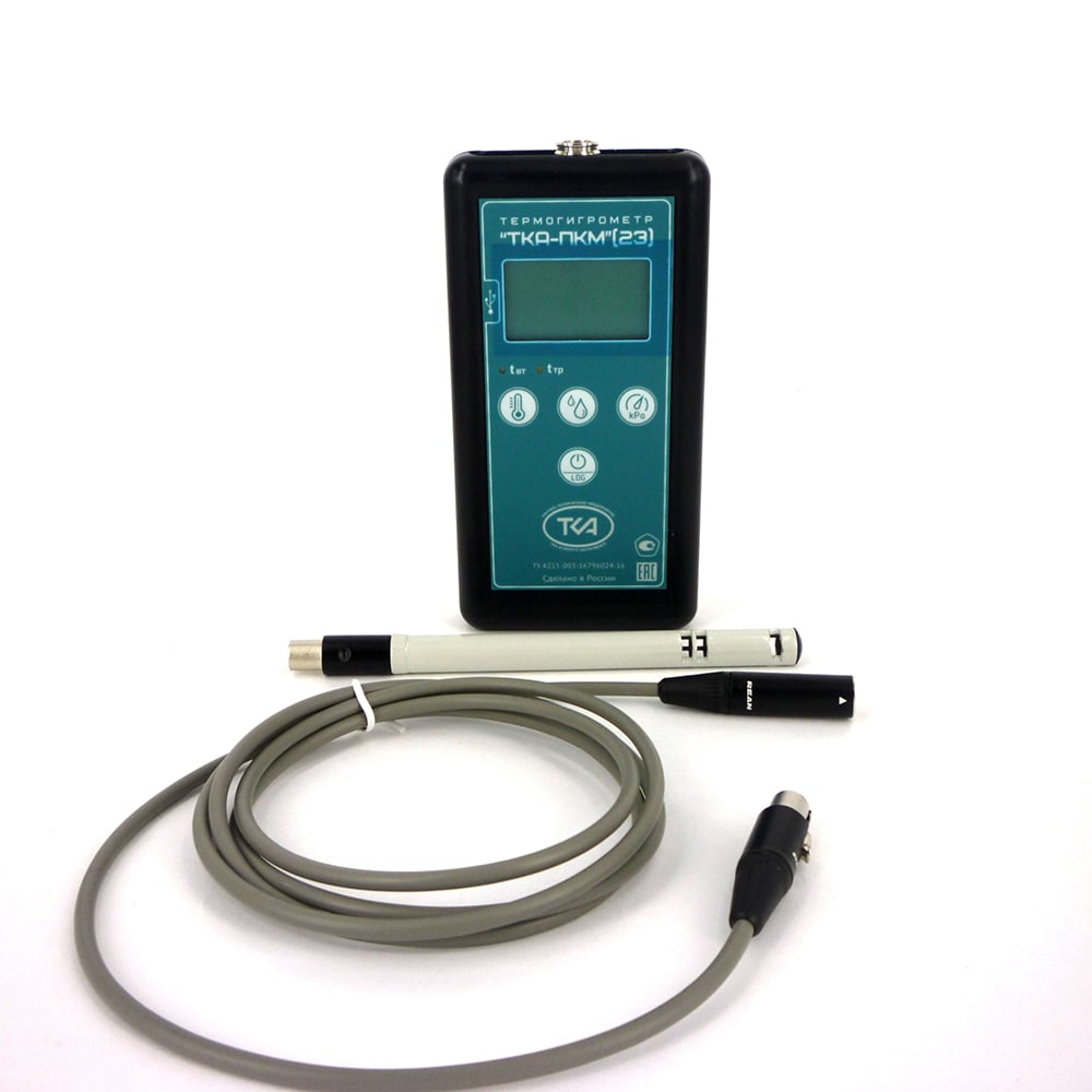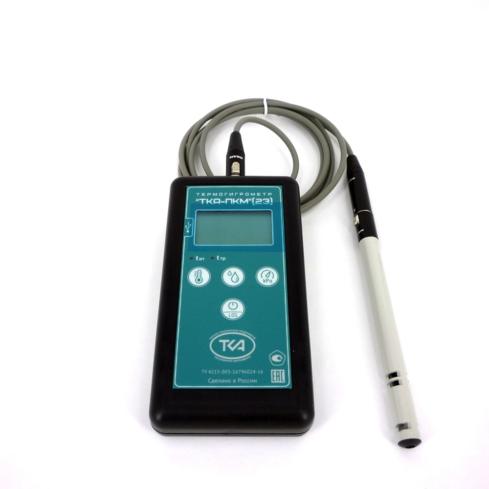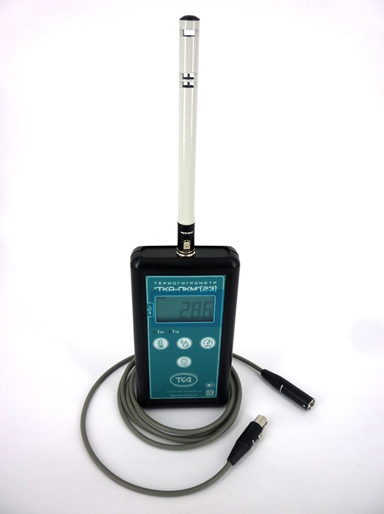 Прибор ТКА-ПКМ (23) предназначен для измерения следующих параметров окружающей среды: относительной влажности и температуры воздуха, а также отображения справочного параметра: атмосферного давления в диапазоне 80 ÷ 110 кПа и вычисляемых в режиме реального времени параметров: температуры влажного термометра (tвл, °С) и точку росы (tтр, °С), с выходом на ПК.