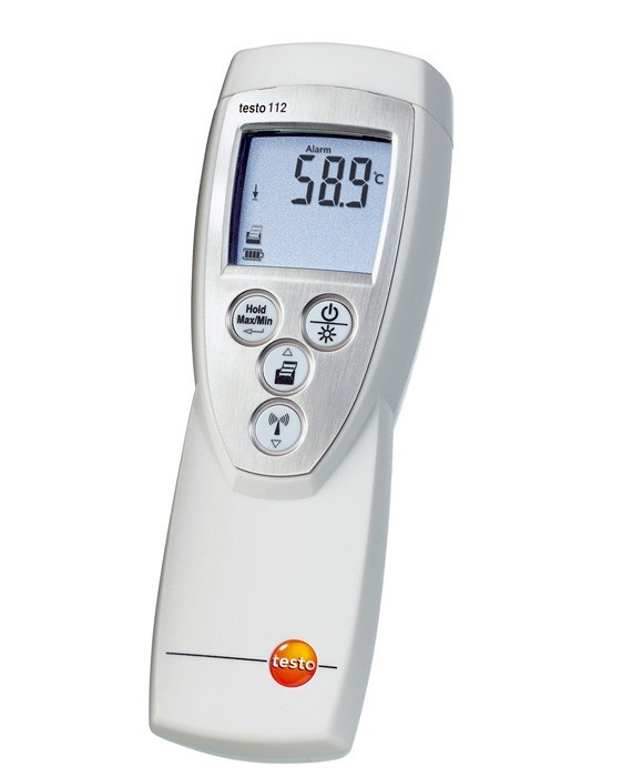 Для регистрации данных измерений прибор Testo 112 обеспечивает возможность их вывода на печать по месту с указанием даты и времени. Рекомендуется для санитарно-гигиенических инспекций. При превышении установленных верхних и нижних предельных значений температуры прибор издает громкий звуковой сигнал тревоги.