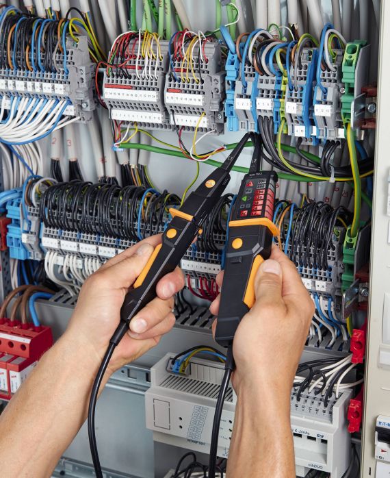 Помимо проверки наличия или отсутствия напряжения в электрических цепях или системах, тестер напряжения Testo 750-2 также подходит для использования в качестве тестера целостности цепи и определения направления вращающегося магнитного поля. Он оснащен функцией проверки Устройств Защитного Отключения. Благодаря вибрации при нажатии на кнопки запуска тест отключения не может быть проведен случайно.