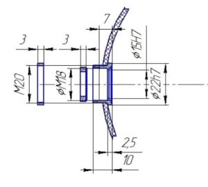 Интегрирующая сфера внутри окрашена белой, диффузно отражающей краской с коэффициентом отражения ρ = 96%. Геометрические размеры входного окна и посадочного места под измеряемый светодиод представлены на рисунке.