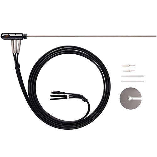 Прочная трубка Пито для измерения скорости потока обеспечивает оптимальные условия для измерения высоких скоростей потока и в сильно загрязненном потоке. Трубка Пито длиной 750 мм оснащена встроенным сенсором температуры и соединительным шлангом с максимальной рабочей нагрузкой до 700 гПа (мбар).
