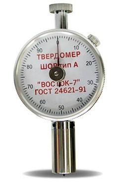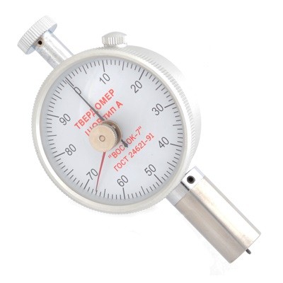 ТВР-А твердомер (дюрометр) Шора тип А с аналоговым индикатором предназначен для измерения твёрдости по шкале Шора тип А резины в соответствии с ГОСТ 263-75 и мягких пластмасс в соответствии с ГОСТ 24621-2015 (ISO 868-2003), в т.ч. мягких полиуретанов: эластомера, ПВХ, силикона, продуктов из натурального каучука, неопрена, смолы, полиэстера, кожи, полиграфических валков и т.п.