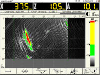 • Сканирование вдоль линии сварного шва антенной решеткой с установленным на ней датчиком пути (поставляется опционально) позволяет в режиме реального времени получать наглядное и достоверное представление о внутренней структуре объекта контроля в виде С- и D- Сканов.