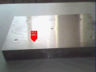 Правее — фотография объекта контроля с указанием места измерения и значения твердости в этом месте.