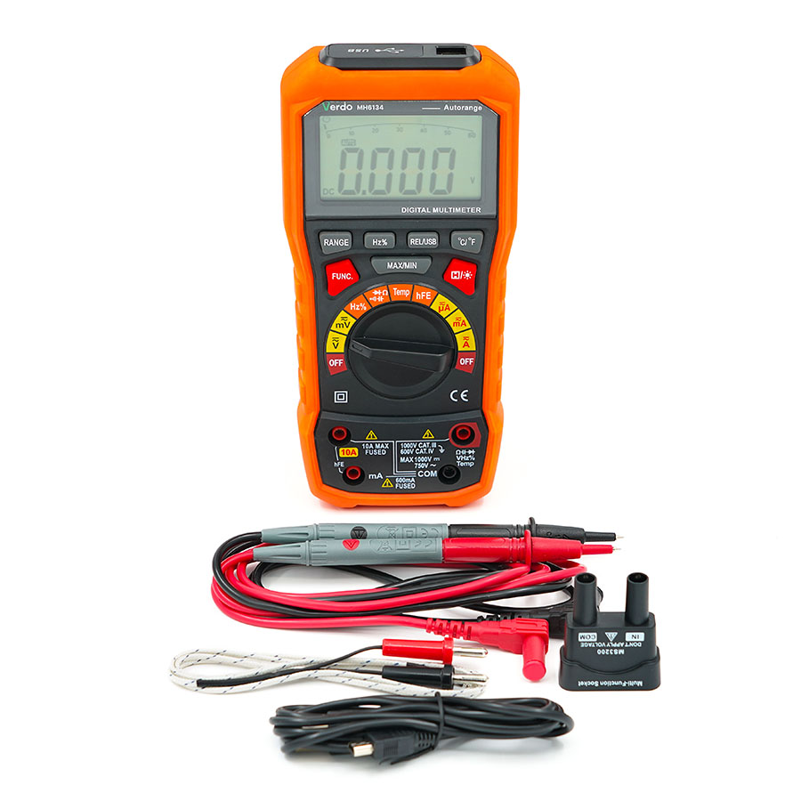 Мультиметр VERDO MH6134 – это многофункциональный ручной цифровой мультиметр с функцией отображения истинного среднеквадратичного значения (TrueRMS), большим многострочным жидкокристаллическим дисплеем с аналоговой шкалой, что облегчает считывание показаний. Передача измеренных значений величин в ПО обработки. Этот многофункциональный измерительный прибор идеально подходит как для профессионального использования на производстве, ремонта и сервисного обслуживания, так и для обучения и бытового применения.