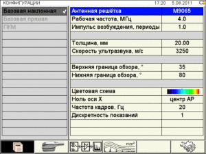 Существует возможность создания и сохранения ряда рабочих конфигураций под различные объекты контроля. Возможность задания имени объекта и технических параметров, с последующим выбором их из памяти прибора перед началом контроля.